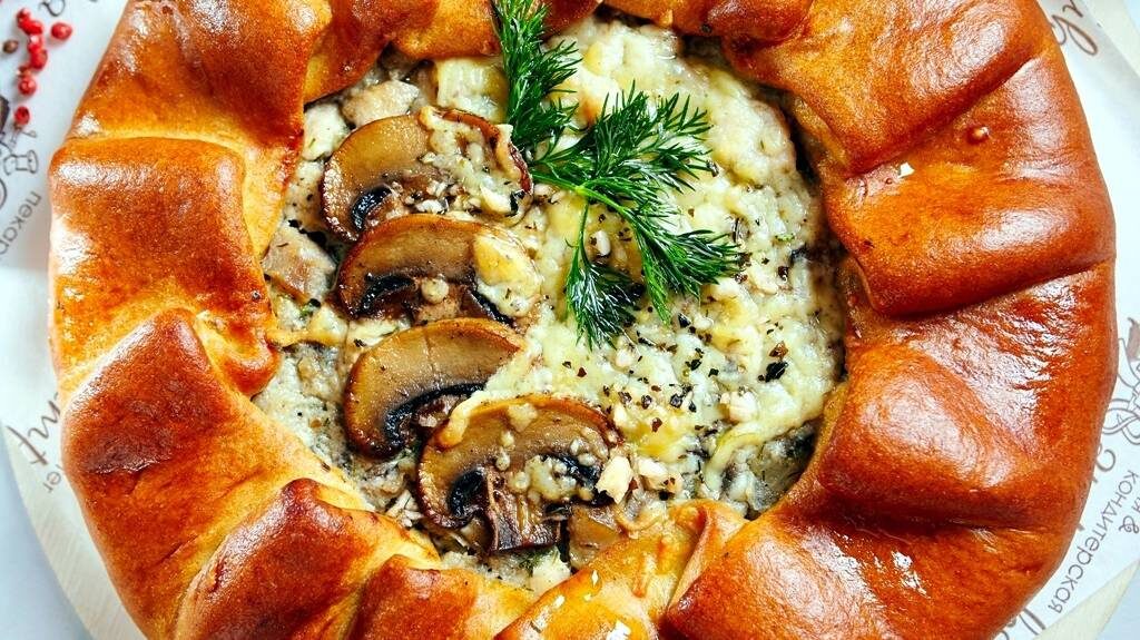 - Выложите начинку в середину лепешки из теста и защипните края так, чтобы середина осталась открытой. Накройте пирог чистым полотенцем и оставьте при комнатной температуре на 20 минут.