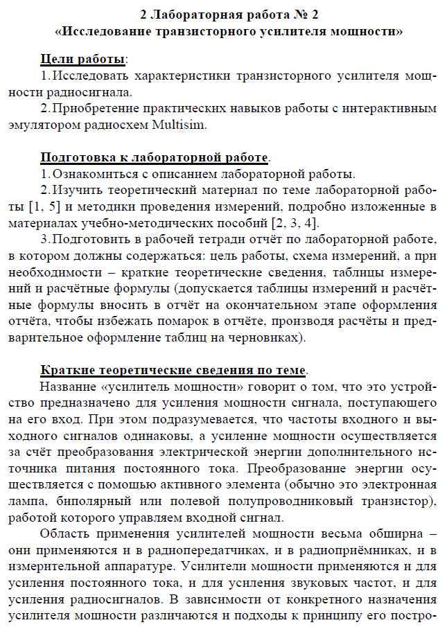 УФиГС_ Лабораторная работа № 2 Исследование транзисторного усилителя мощности