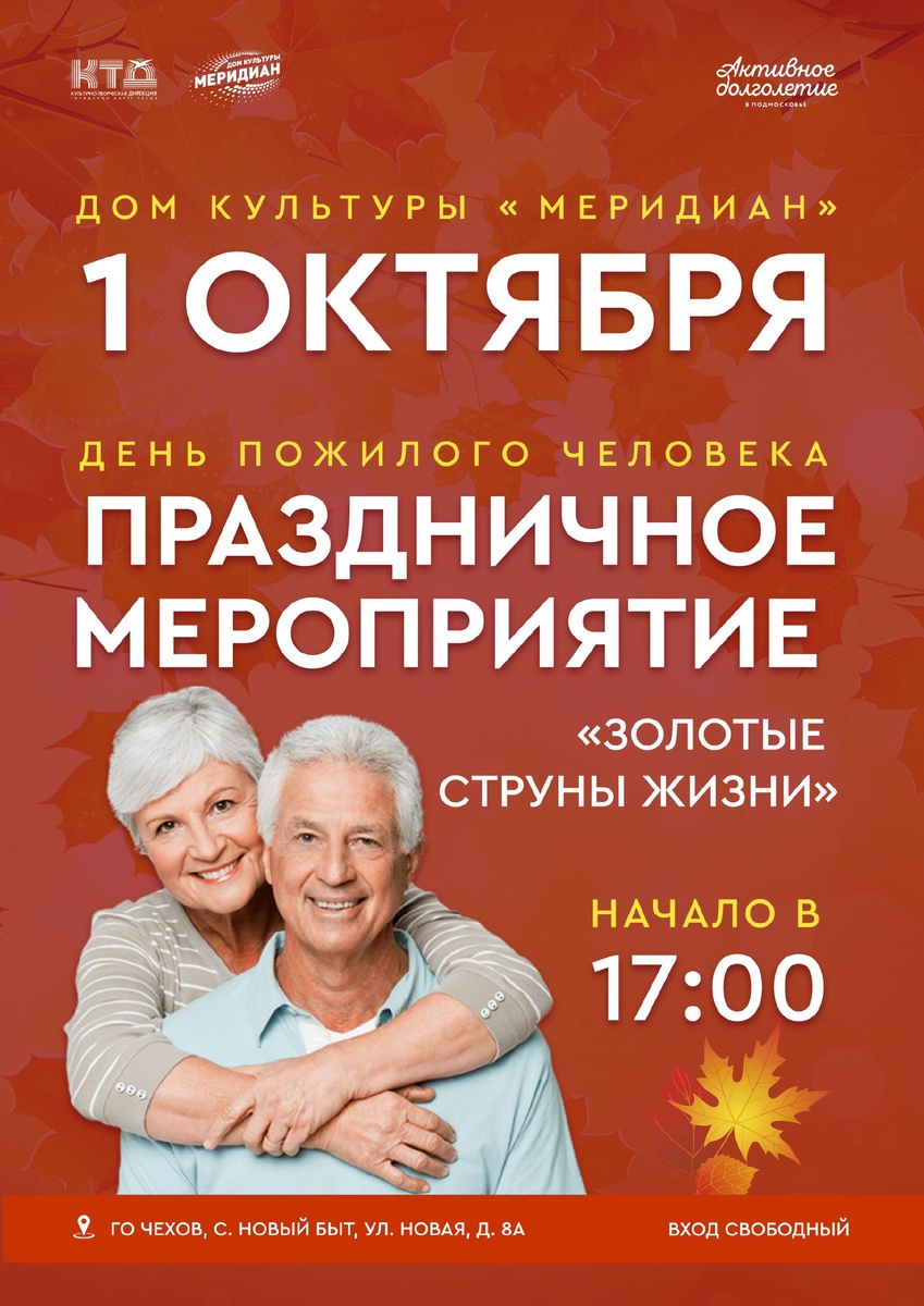 1 октября, по сложившейся традиции, приглашаем жителей и гостей старшего поколения в Дом культуры Меридиан с. Новый Быт ГО Чехов на празднич