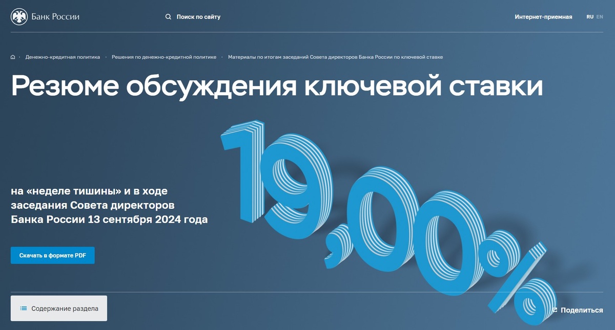 Банк России по недавней традиции опубликовал резюме обсуждения ключевой ставки спустя 10 дней после заседания. Там всегда дается чуть более полная информация, дающая представление о том, почему принято именно такое решение, какие еще варианты предлагались и почему, нежели это озвучивает г-жа Набиуллина на своих пресс-конференциях. Предлагаю вашему вниманию краткий обзор важных моментов из этого резюме и свои выводы, которые можно из этого сделать. Не буду останавливаться на рассуждениях о сложившихся внешних и внутренних условиях - их как раз уже озвучила г-жа Набиуллина, там особо ничего хорошего нет, а перейду сразу к самому важному: чем руководствовались члены Совета директоров ЦБ в принятии решения. Обсуждались 3 возможных варианта действий со ставкой: оставить 18%, повысить до 19% и повысить до 20%. Аргументов в пользу оставления ставки на прежнем уровне 18% было мало (только 2), и они были неубедительными: 1. Высокая инфляция в 3 квартале может быть следствием значительного полож