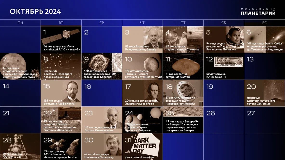 Избранные даты и события октября 2024 года в астрономии и космонавтике