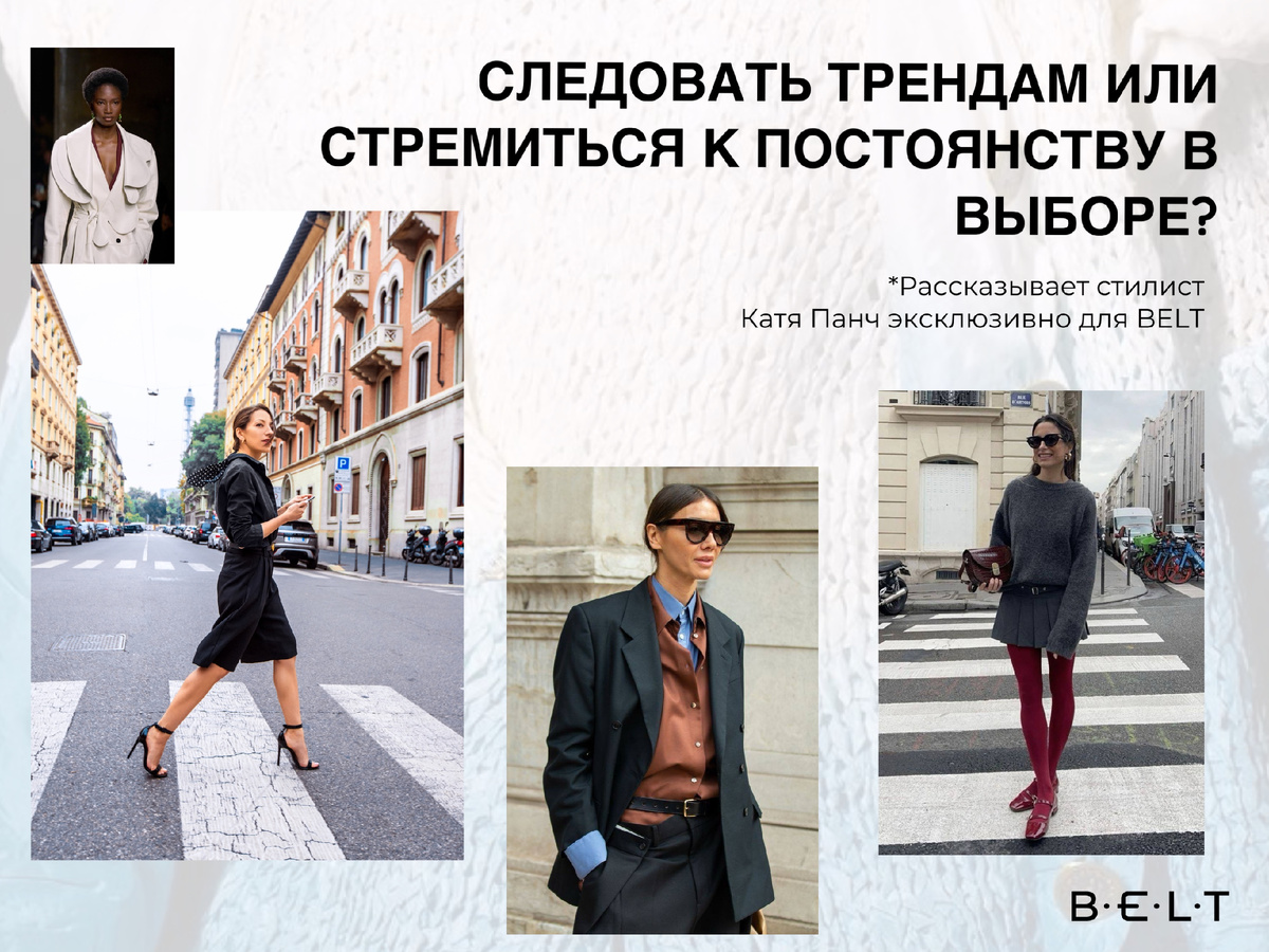СЛЕДОВАТЬ ТРЕНДАМ ИЛИ СТРЕМИТЬСЯ К ПОСТОЯНСТВУ В ВЫБОРЕ? (Стилист Катя Панч эксклюзивно для BELT)
