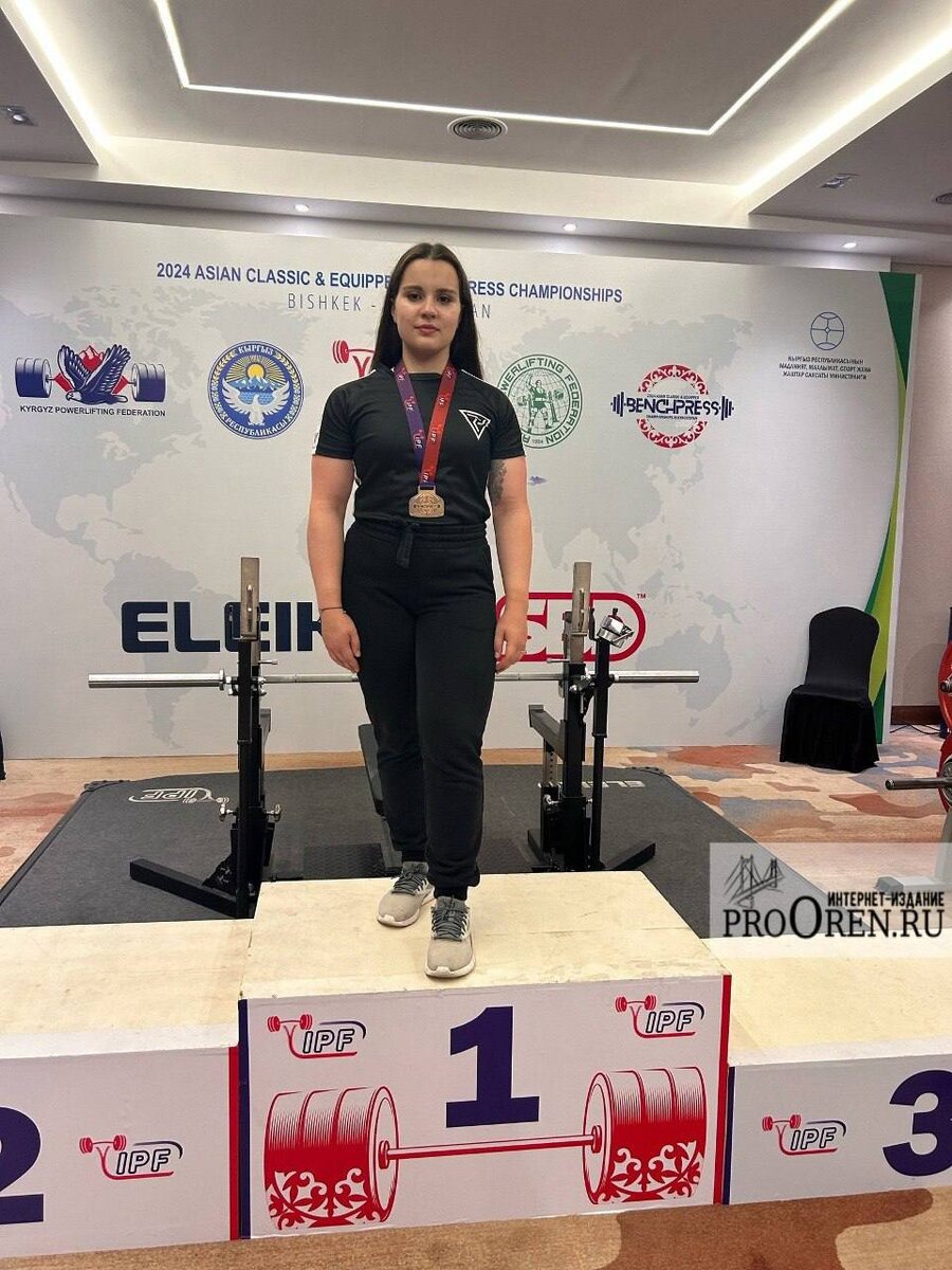 И установила новый рекорд России среди юниорок. В жиме штанги лежа Дарье при собственном весе 63 кг покорились 170 кг! Рекордный результат оренбурженка показала на международном помосте в столице Кыргызстана – Бишкеке. В составе нашей национальной сборной Дарья успешно выступила на чемпионате Азии по пауэрлифтингу в дисциплине «жим», завоевав золотую медаль в весовой категории до 63 кг. «Заранее по выступлению мы ничего не планировали, просто работали над классическим жимом все лето. В экипировке – жимовой майке – начали работать только на сборах, которые прошли накануне соревнований в Кисловодске. Мы знали, что на помосте будет борьба, моей основной соперницей стала соотечественница Арина Демидова. По итогу получилось так, что первый подход у обеих был не засчитан, ассистент очень тяжело выводил штангу. Во втором подходе я пожала 157,5 кг, она – 155. В третьем подходе началась тактическая борьба. План Арины и ее тренера состоял в том, чтобы загнать нас на максимально большой вес и вый