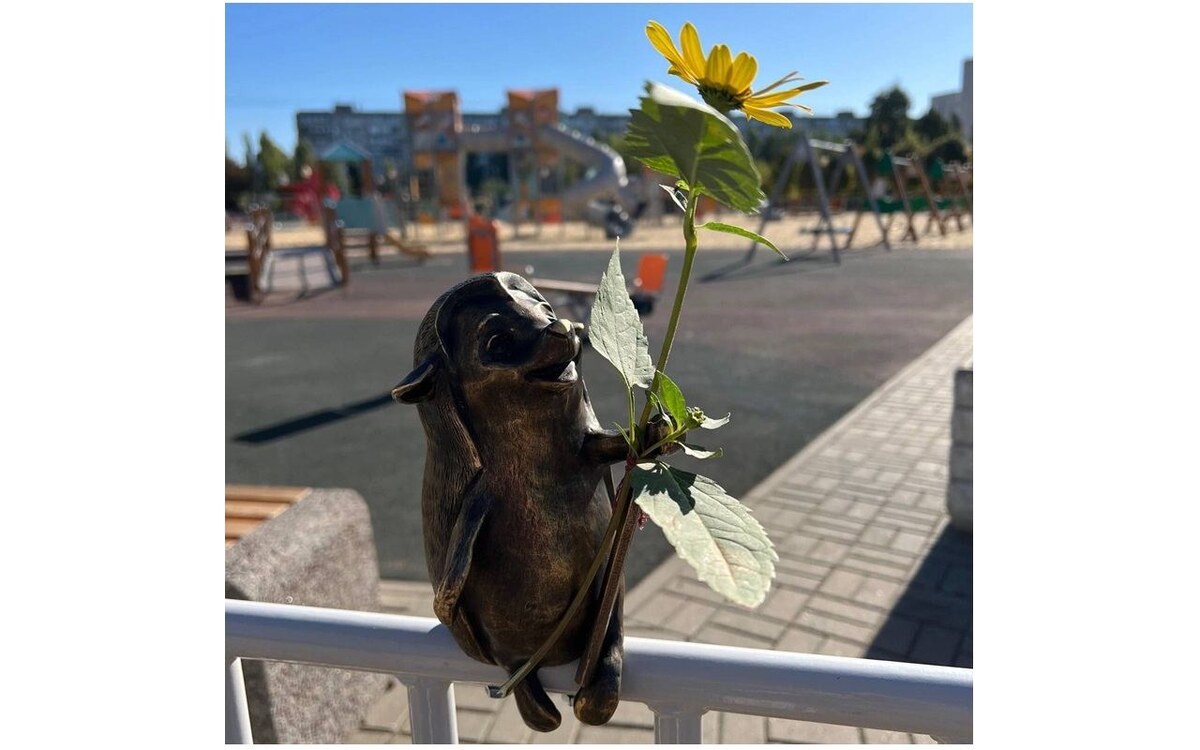 Милому металлическому ёжику воронежцы заменили сломанный металлический цветок на настоящий