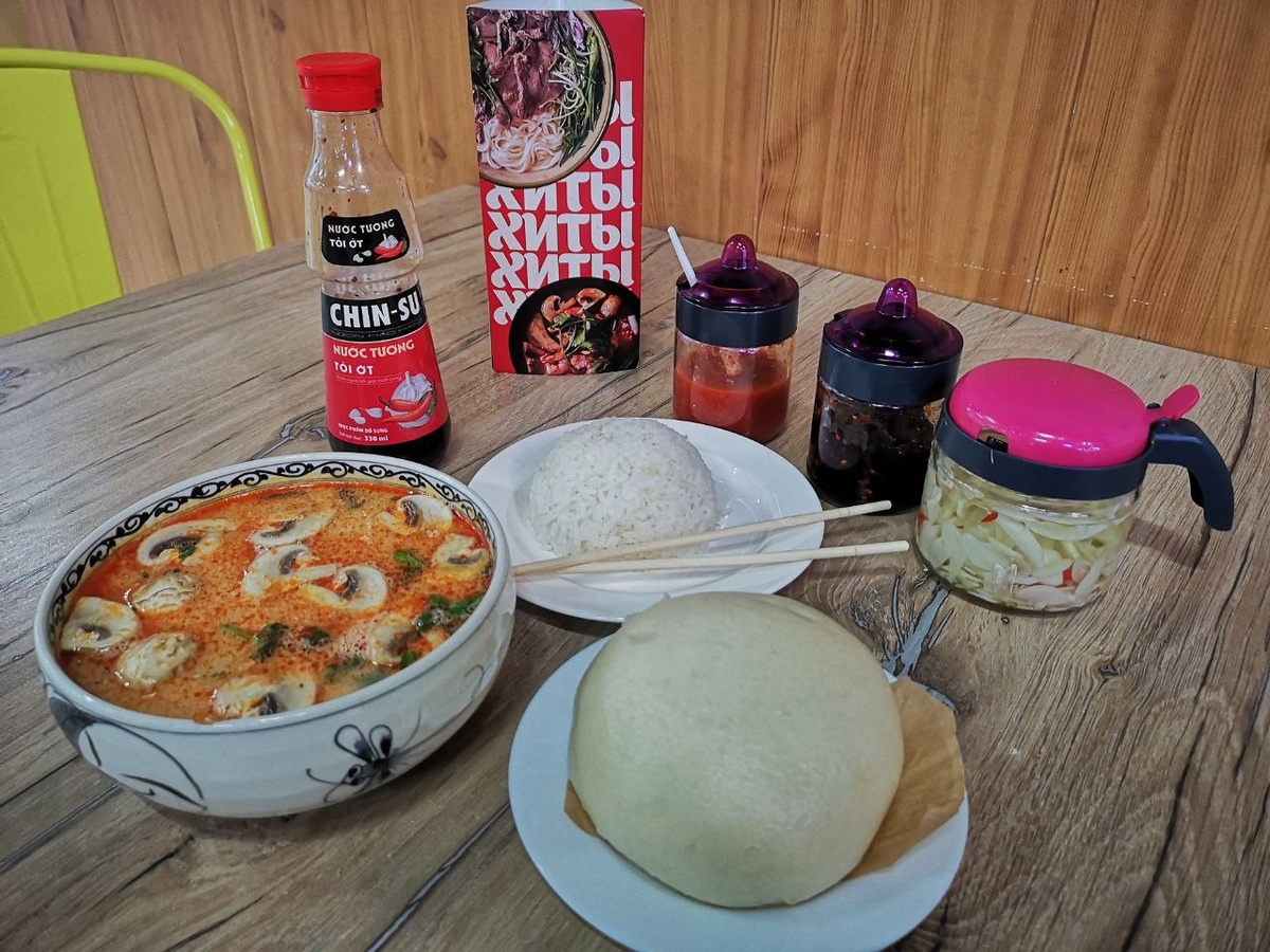 Новинка в меню кафе Pho City – «хэдайнер» тайской кухни Том ям с морепродуктами. Что же делает этот суп таким особенным? Том ям – это не просто блюдо, это настоящая симфония вкусов! Его пряный, кислый и немного острый вкус завораживает с первой ложки. А добавление свежих морепродуктов делает его ещё более изысканным! Настоятельно рекомендуем наслаждаться том ямом в сочетании с паровой булочкой Бань Бао. Где? Конечно же в традиционном вьетнамском кафе Pho city, которое располагается на 1 этаже ТЦ «Ханой-Москва».