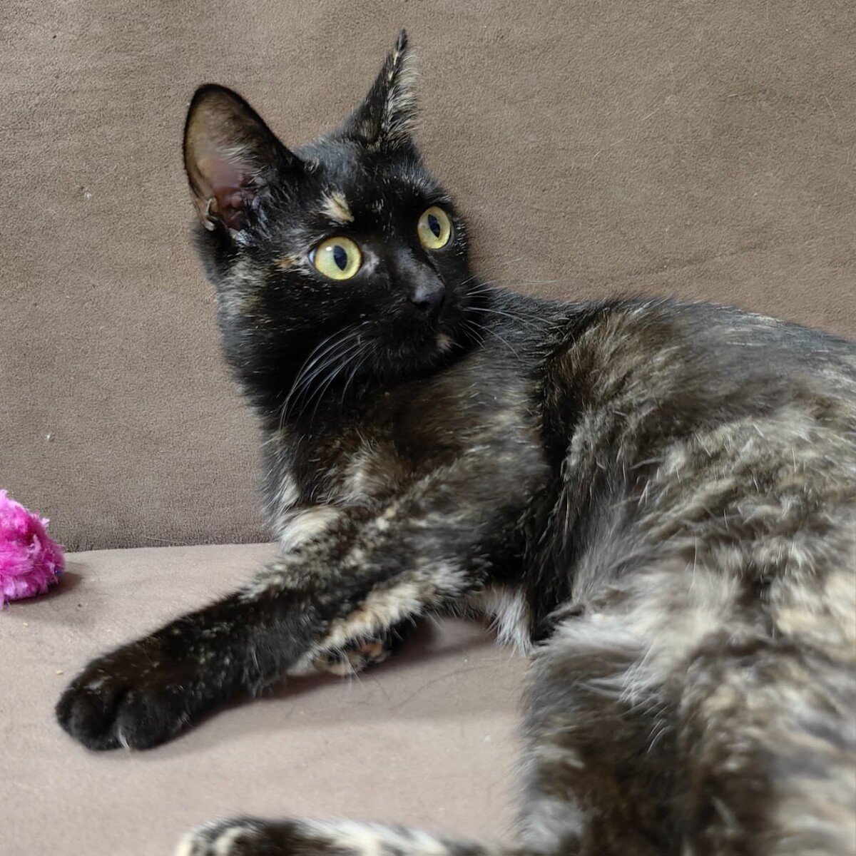 Фифи, миниатюрная пантерка черепахового окраса с аккуратным маленьким носиком и оранжевой кисточкой на хвосте. Фифи нет еще и года — она еще которебенок. Очень ласковый, добрый, преданный. Фифи — кошечка, которая любит обниматься и сидеть на руках. Она невероятно контактная и очень общительная, всегда рада человеку! Фифи грустит в боксике без людей и общения. Ей хочется побегать и поиграть, поласкаться, прилечь рядышком, уткнуться носиком в плечо. Фифи хочется стать домашней! Кошечка здорова, стерилизована, обработана. Ходит в лоточек. Готова ехать в семью хоть завтра! Москва 89152551536