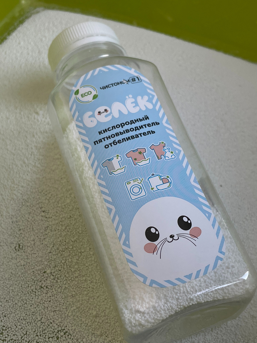 Такой состав отбеливателя делает его экологичным, безопасным и эффективным. Растворяясь в кипятке, гранулы “Белька” распадаются на соду, воду и кислород. Содержание последнего в компонентах гранул очень высоко - до 70%. Именно это и позволяет “отцеплять” частицы грязи от ткани, не повреждая ее. Таким образом, пятновыводитель эффективно борется с загрязнениями и сохраняет ткань. Кислород фактически выталкивает грязь из волокон ткани, легко проникая в нее. Он не повреждает структуру нитей, не действует жестко, в отли