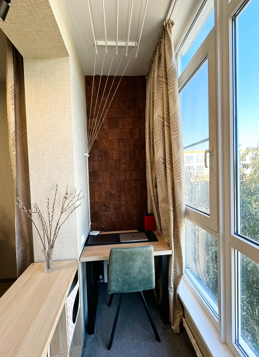 При наличии индивидуального отопления, в этой нише можно разместить батаре. Лайфхак: так белье на лоджии будет сохнуть намного быстрее.