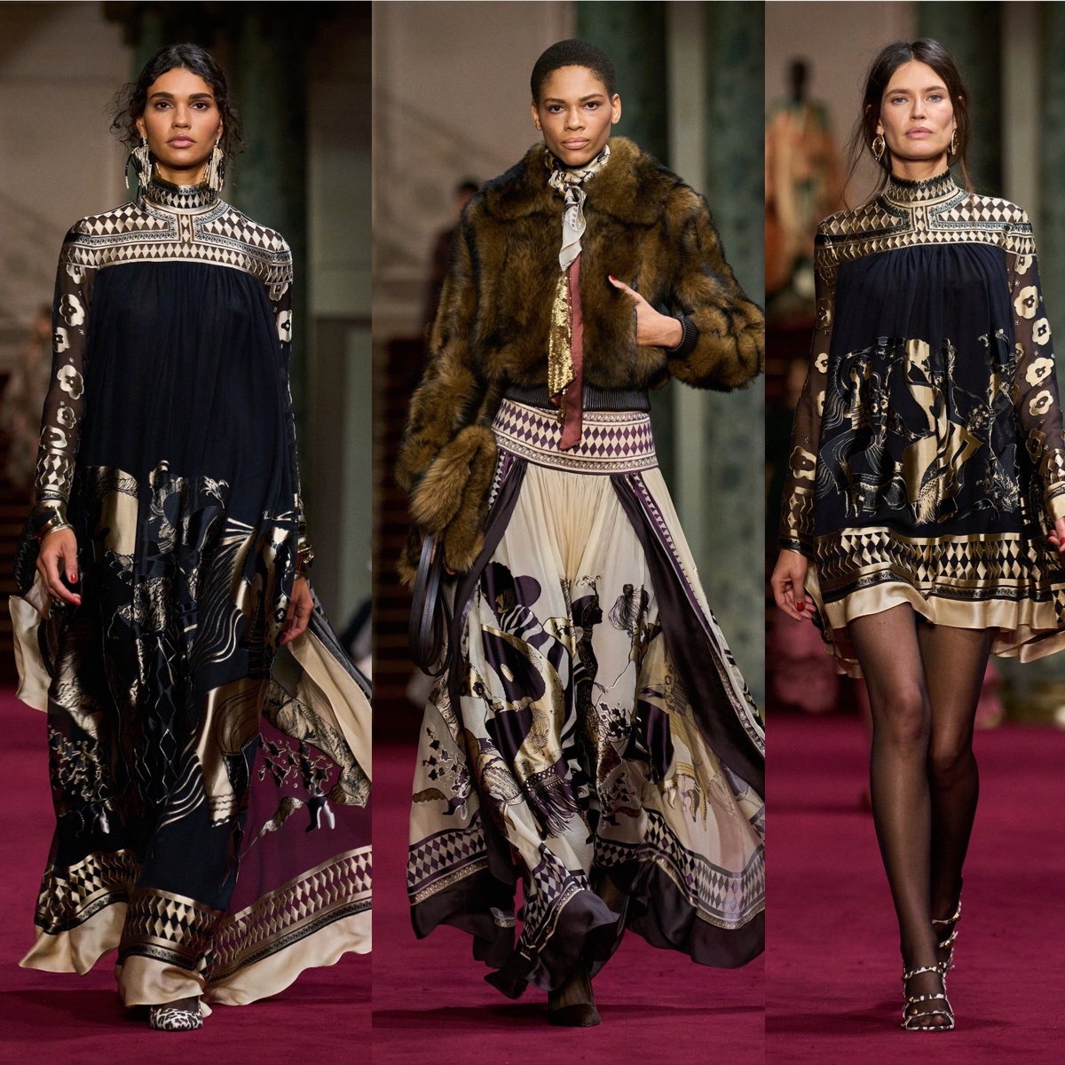 Еще одна богемная коллекция прямиком попадает в копилку сезона и далеко не на последнем месте. Zimmermann Fall 2024 RTW покоряет с первых нот яркими контрастными узорами, мехами и женственной утонченностью. Конечно, первое, с чем ассоциируется этот МД - это женственные летние платья, так полюбившиеся русскому сердечку, что вполне понятно и объяснимо. Ведь они шикарны, роскошны и женственны. А в этой коллекции платья украсили еще и рюши, крупные блестки, аппликации и нежное кружево. «Это очень важно делать то, что мы любим делать. И мы не отклоняемся». — сказала Ники Циммерманн. Коллекция вдохновлена модными иллюстрациями 1920-х годов, которые хранились в личной коллекции дизайнера, и преисполнена богемной элегантностью и вневременным очарованием. Но помимо воздушных романтичных платьев, коллекция также отдает дань времени и делает это стильно. Деним в коллекции смотрится здорово! Мешковатые джинсы - тренд сезона - смотрятся круто. Элементы мужского гардероба в принципе не умол