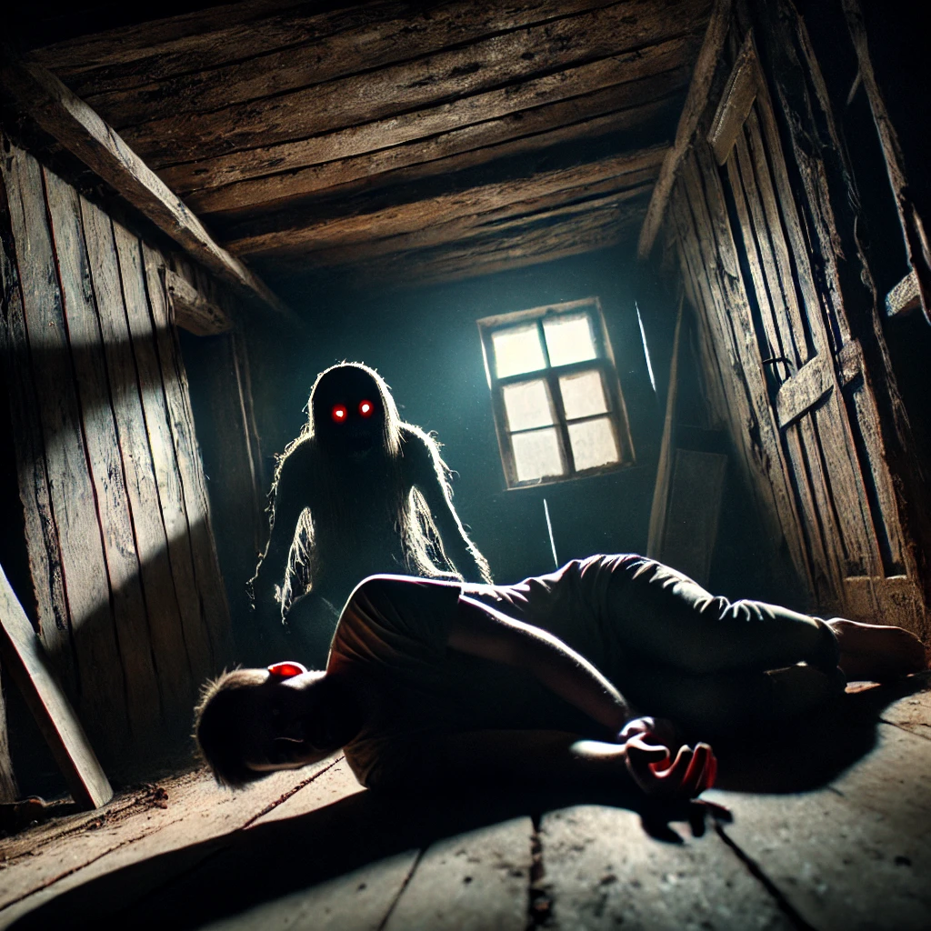 Арсений резко обернулся на голос. В углу, где ещё мгновение назад была пустота, теперь стояло существо — низкорослое, сгорбленное, почти сливавшееся с тенью. Домовой. Как в старых деревенских сказках. Но это не был добродушный старичок, каким его обычно описывали. Это существо выглядело словно сгусток тьмы, его глаза горели красным, злобным светом, а когтистые руки царапали пол, оставляя глубокие следы на старых досках. — Ты не хозяин, — повторил домовой, его голос был глухим, шипящим, словно он не привык говорить вслух. Арсений застыл. Холодные капли пота побежали по его спине. Мысли путались. Ему всегда казалось, что такие вещи — сказки для детей, чтобы запугать их. Но вот он, этот домовой, стоит прямо перед ним. Живой? Нет, скорее мертвый, или что-то между. Он чувствовал, как страх сковывает тело, но инстинкт самосохранения заговорил в нём раньше. — Это... Это мой дом! — выдавил Арсений, сам не веря своим словам. Домовой чуть склонил голову, словно изучая Арсения. Из его горла вырва
