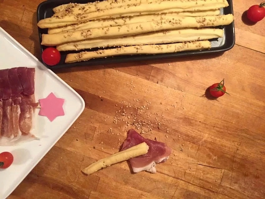 Как приготовить хлебные палочки? Хлебные палочки - это пикантное печенье, которое употребляют в качестве закуски, особенно с пармской ветчиной. Они готовятся из дрожжевого теста, а затем формируются в виде палочек перед выпечкой. Ингредиенты Примерно на тридцать хлебных палочек (в зависимости от их размера) 240 г муки 5 г мелкой соли 15 г свежих дрожжей 135 мл теплой минеральной воды 30 мл оливкового масла + немного в небольшой миске семена кунжута Приготовление: В чашу кухонного комбайна насыпьте муку, соль, раскрошенные свежие дрожжи , теплую минеральную воду и оливковое масло. Месите крюком на медленной скорости, пока тесто не сформирует шар, который будет отходить от стенок чаши. Накройте чашу с тестом чистой тканью и оставьте при комнатной температуре, пока тесто не увеличится вдвое. Слегка посыпьте рабочую поверхность мукой и раскатайте тесто скалкой в прямоугольник размером примерно 15 на 30 см. С помощью кондитерской кисти нанесите на тесто тонкий слой оливкового масла и по