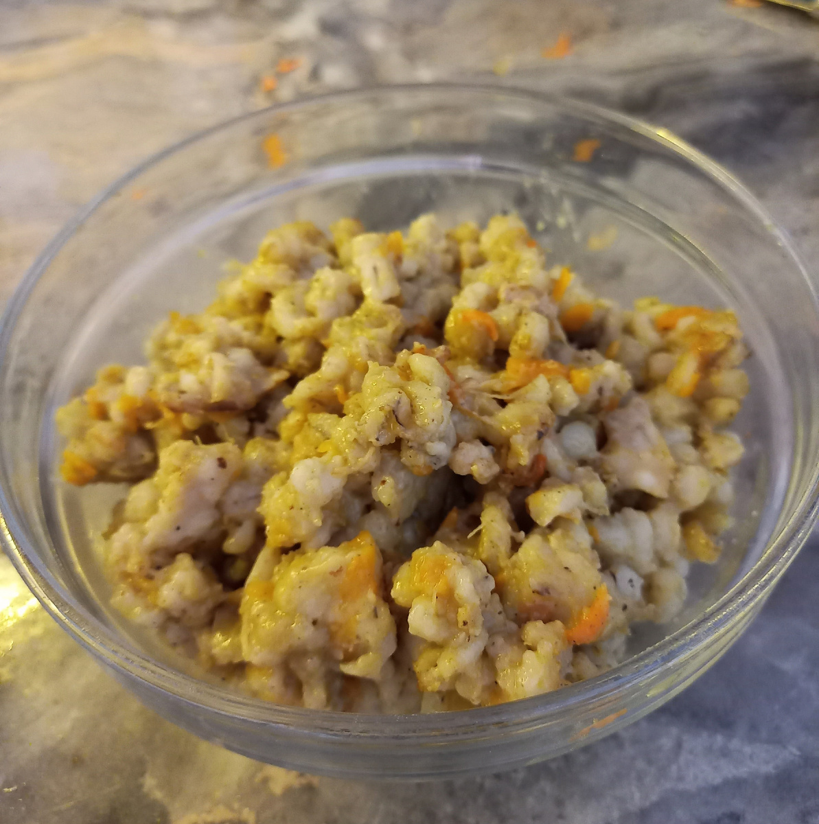 Всем доброго времени суток, сегодня вспомнила забытый старый рецепт, перловка с тушёнкой. Перловку варила последний раз лет семь назад точно, а может даже и больше, именно перловку как кашу, а не рассольник. Крупу сварила, отдельно сделала пережарку лук, морковь, тушёнку, после смешала готовую перловку и пережарку и ещё маленько потомила, чтобы всё сдружилось. На удивление вся семья, в том числе и дети с удовольствием всё съели. А к такой кашке сделала ещё быстренький салатик с фунчозой и овощами. Лапшу залила кипятком на 5 минут, после промыла под холодной водой. Лапша чтоб не была такой длинной разрезала ножницами. Из овощей соломкой нарезала огурец и болгарский перец,добавила готовую корейскую морковку, но самое главное в этом салате , это заправка. Долго искала в интернете, но всё же остановилась на соусе, который написан на упаковке лапши. И знаете ни капли не пожалела. Только добавила поменьше сахара. Салат был вкусный. И вам всем желаю вкусного и приятного настроения.