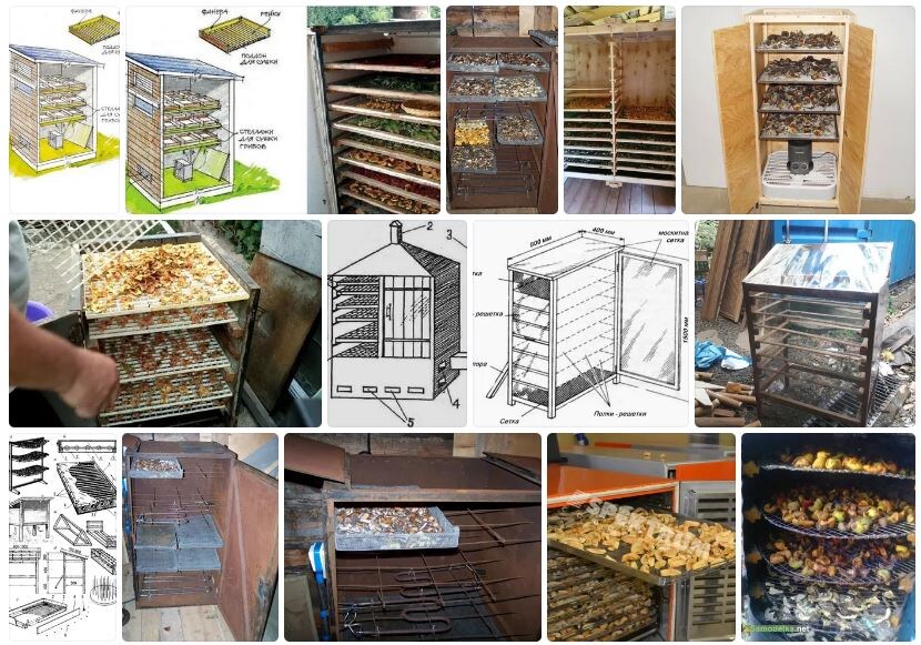 Хочу сделать у себя на даче сушилку для грибов. Сначала хотел купить такую штуку, но сосед заядлый грибник уговорил сделать сушилку своими руками, сказал что в этом ничего сложного нет, а грибы высушенные в такой сушилке сохраняют аромат, в отличие от грибов высушенных в электросушилке. В общем уговорить то он меня уговорил, а схем сушилки дал штук 6-7 и все одна мудренее другой, кто подскажет более простой способ изготовления сушилки для грибов.