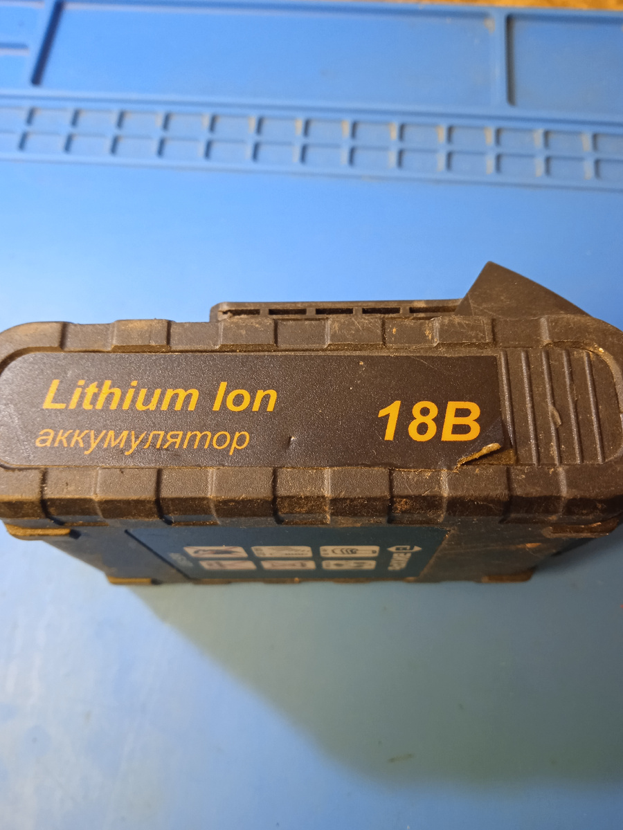 Принесли в ремонт аккумулятор с зарядным устройством, вроде как Вихрь АКБ18Л1, хоть и на русском написано, но все выдает китайскую начинку. Подключаем его к зарядному устройству и видим, что светодиод на заряднике, как горел зеленым так и продолжает гореть. Получается, зарядный ток отсутствует. Измеряем. Напряжение есть, открываем аккумулятор открутив четыре самореза. Напряжение на аккумуляторе всего 15В и это говорит о том, что он посажен или в нем есть отдельные неисправные банки 18650. Проверяем. Только один аккумулятор 18650 оказался неисправен. По маркировке ( INR) видно, что это высокотоковые аккумуляторы и заменить его на серию (ICR) не получится. У них разный максимальный ток разряда у INR это значение 10С, что означает при его емкости в 2000 мАч (2Ач), максимально 20А. У простых же ICR значение максимального тока всего 1С. Ищем подобный, так как нового такого нет и надо сделать срочно. В запасе лежат аккумуляторы LGABHE21865 Эти аккумуляторы так же от шуруповерта, но б