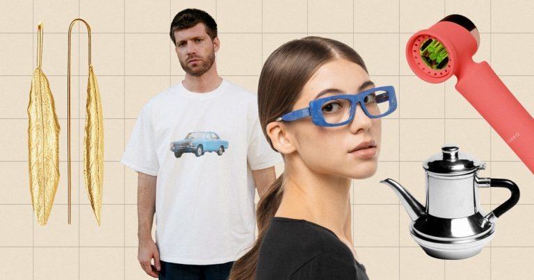 А также блюда с керамической спаржей, цветные оправы, серьги-листья, девайс, который сэкономит женщинам тысячи долларов, мужские футболки с ретроавтомобилями и женские тренчи, как у Глеба Жеглова.