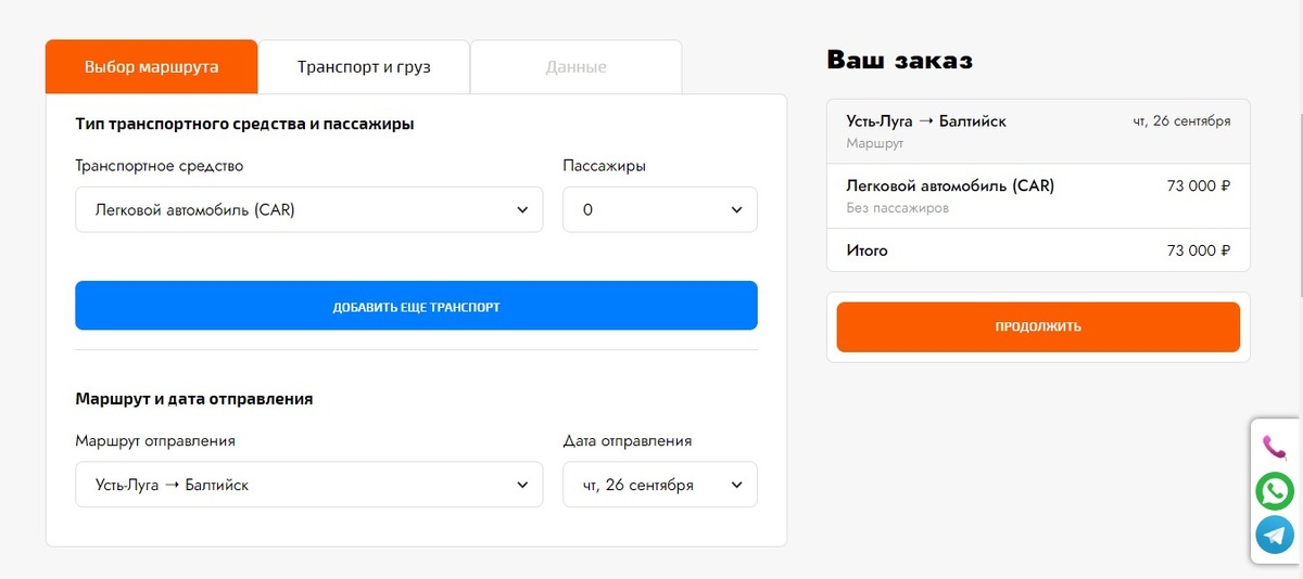 Стоимость перевозки автомобиля на пароме в 2024 году зависит от нескольких факторов: длина и вес автомобиля, наличие прицепа и количество сопровождающих лиц. В среднем, перевозка легкового автомобиля обойдется в 73 000 рублей. В цену также входит возможность провоза некоторых личных вещей, если они не превышают установленные лимиты по весу и объему. Заказать и оформить перевозку автомобиля в/из Калининграда по телефону 8 800 505 97 87