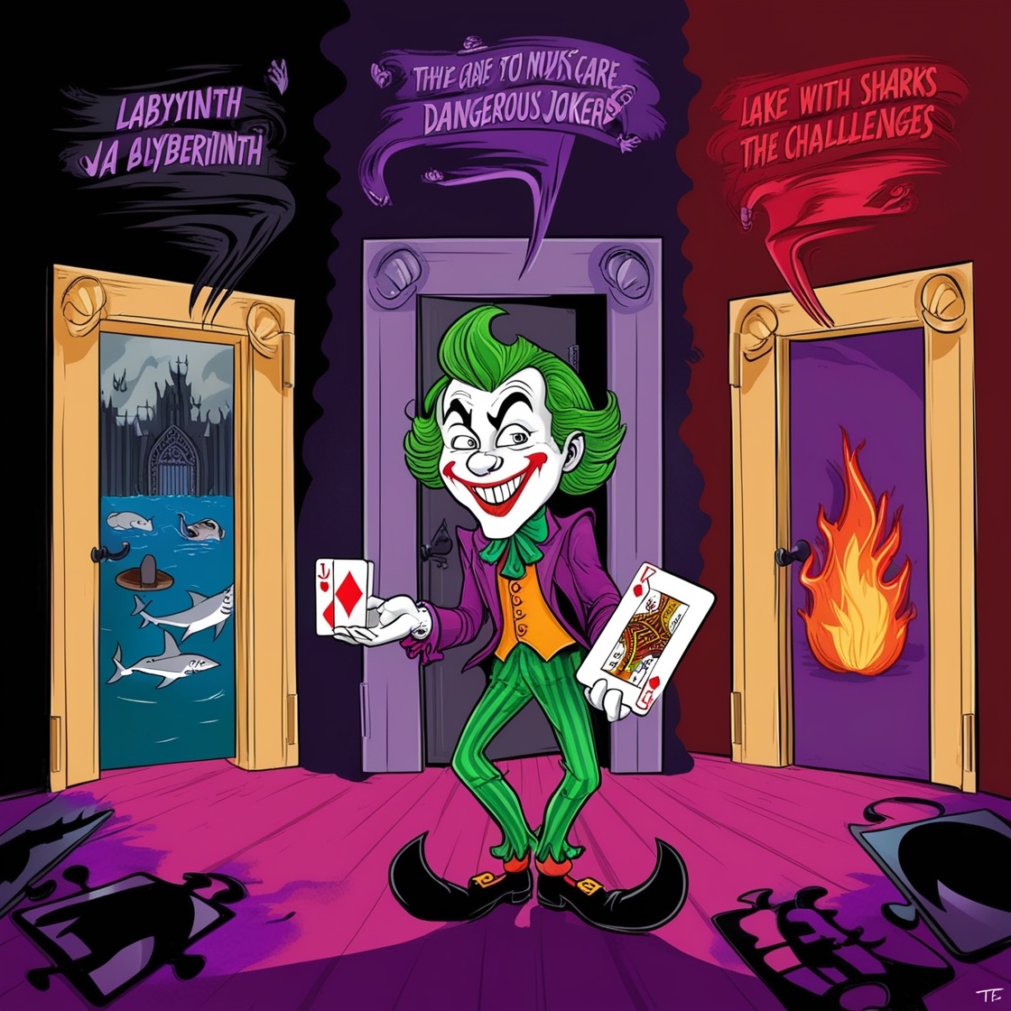 Привет, искатели приключений! Джокер вновь готов испытать ваши способности! Сегодня вас ждет особенный квест — он не только проверит вашу смекалку, но и заставит погрузиться в мир загадок, юмора и неожиданностей. Готовы ли вы принять вызов и стать героем этой истории? А может, ваши друзья смогут вас обойти? Узнаем это в конце квеста. Присоединяйтесь и начинаем! Сегодня вы окажетесь в центре запутанной игры Джокера, где каждый шаг требует не только ума, но и чувства юмора. Вас ждут загадки — от простых до тех, что могут сбить с толку даже самых опытных. Всё начнется с легкого вопроса, но с каждой загадкой напряжение будет расти. Готовы испытать себя? И не забудьте пригласить друзей — увидим, кто окажется быстрее и хитрее в разгадке тайн Джокера. Вы входите в мрачную комнату. Перед вами три двери: первая из них ведет к бесконечному лабиринту, вторая — к озеру с акулами, а за третьей — пламя, которое горит уже тысячи лет. Единственный выход — открыть одну из дверей и пройти через нее. Заг