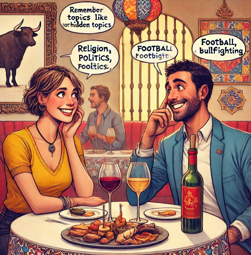 На свидании с испанцем главный твой враг - это тишина или повисшее неловкое молчание. Если у вас в диалоге наступила пауза, будь уверена, что твой партнёр заподозрит неладное: «Неужели я ей не нравлюсь?». Испанцы – мастера словесных дуэлей. Они обожают говорить, спорить и оживлённо обсуждать абсолютно всё: погоду, новые фильмы, любимые блюда или планы на выходные. Однако здесь есть одно важное "но": существуют темы, которые на первом свидании лучше не затрагивать. В Испании, как и во многих других странах, есть запретные вопросы, которые стоит оставить на потом, если не хочешь попасть в неловкую ситуацию.