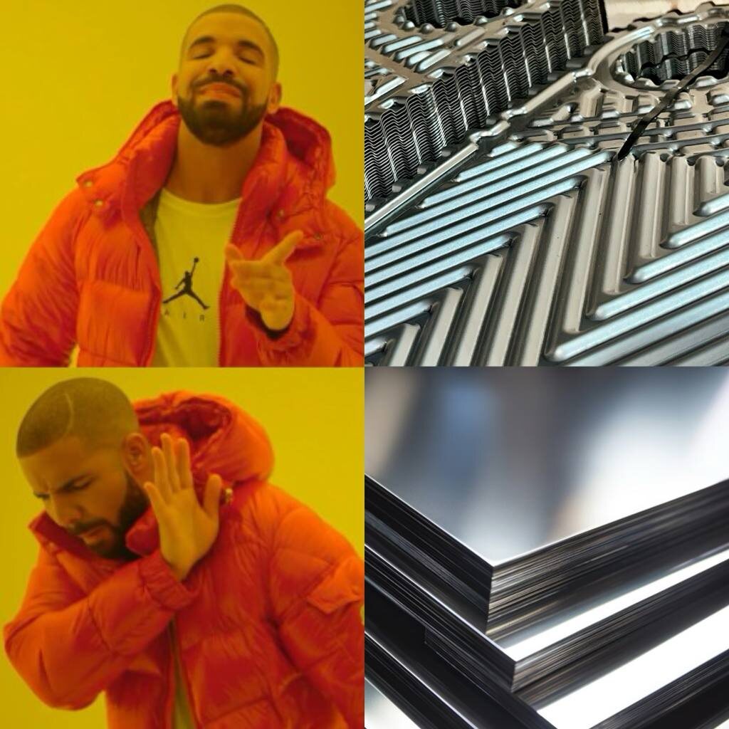 Материалы изготовления Пластины теплообменного аппарата чаще всего изготавливаются из нержавеющей стали — около 95%, титана и сплава. Эти материалы обладают высокой коррозионной стойкостью и долговечностью, что делает их идеальными для использования в условиях, где пластины могут контактировать с агрессивными средами, например, соленой водой. Поверхность пластин Поверхности гофрированных пластин имеют характерный рифленый профиль, который играет ключевую роль в процессе теплообмена. Этот древний принцип, использовавшийся еще в VI веке до нашей эры в римских термах, заключается в том, что гофрированные поверхности создают турбулентность в потоках воды. Это увеличивает площадь контакта между нагревающей и охлаждающей средами, что, в свою очередь, способствует более эффективной передаче тепла. Гофрированные пластины имеют вид тонких металлических листов, в которых методом прессовки выдавливаются каналы глубиной от 3 до 8 мм. По этим каналам протекают рабочие среды, что обеспечивает эффект
