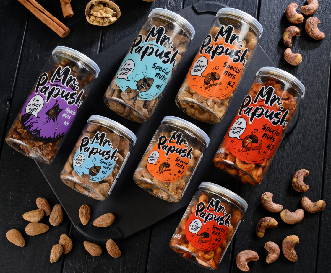 Современный рынок снеков меняется, и одной из ключевых тенденций стало увеличение спроса на орехи со вкусом. Потребители всё чаще выбирают сбалансированные перекусы, которые не только полезны, но и радуют разнообразием вкусов. Орехи со вкусом, с добавлением трав и специй, стали популярным выбором среди тех, кто ищет новое гастрономическое впечатление. Почему орехи со вкусом Mr.Papush? 🔸 Здоровое питание. Орехи — это отличный источник полезных жиров, белков и витаминов. Они стали неотъемлемой частью осознанного питания, но современные потребители также хотят получать удовольствие от вкуса. 🔸 Уникальные сочетания. Согласно исследованию Grand View Research, рынок орехов со вкусом будет расти на 5,8% ежегодно до 2027 года. Орехи с оригинальными вкусами — пряными, сладкими или пикантными — привлекают всё больше внимания. Наш вклад Мы производим орехи со вкусом, которые отражают современные тенденции. В нашем ассортименте — миндаль с солью и розмарином, кешью с паприкой, кешью с корицей и