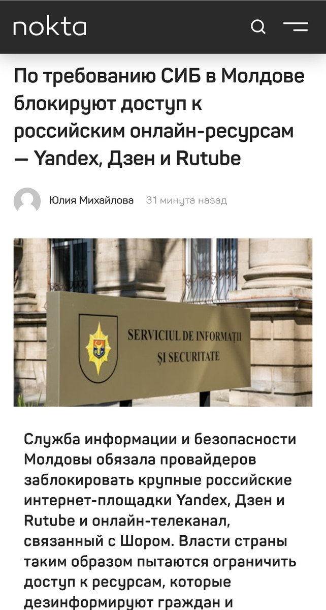 Я не политик, но как и все, имею свои виды на происходящее в мире. Я, как и каждый из вас, вижу общество своими глазами. Но то, что творит власть в Молдове, перед выборами, это нарушение всех мыслимых и немыслимых границ. За весь период своей власти, Санду закрыла практически все русскоязычные каналы на ТВ. Следом взялась за интернет и позакрывала неугодные сайты, которые критикуют её правление. А перед выборами активизировалась еще сильнее. Вчера заблокировали Дзен, Яндекс и рутуб. Очередная "демократия", которая вновь ударила по народу. Повторю еще раз...я не политик, но эта власть перешла все границы. УВАЖАЕМЫЕ МОЛДАВАНЕ, ПРОЖИВАЮЩИЕ В РФ!!! ОГРОМНАЯ ПРОСЬБА! ГОЛОСУЙТЕ 20 ОКТЯБРЯ ПРАВИЛЬНО! пишу с VPN и как следствие дерьмократии, жду полицию у дверей.