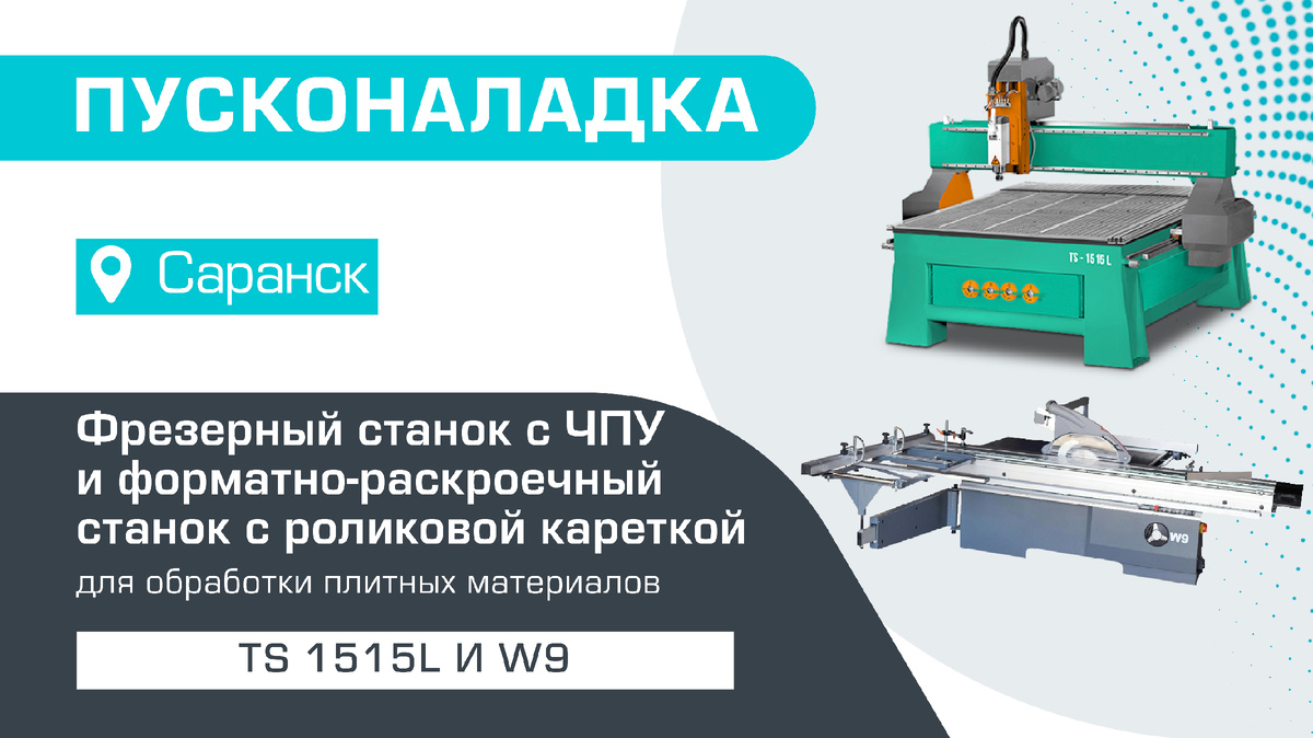 В июне 2024 года нашей компанией была осуществлена поставка и пусконаладка фрезерного станка с ЧПУ TS 1515L и форматно-раскроечного станка с роликовой кареткой и наклоном пилы W9 в Саранске.