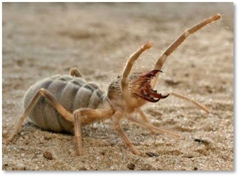 Фаланги, они же сольпуги - паукообразные животные, в нашей стране их можно встретить на Северном Кавказе, Нижнем Поволжье, в Крыму. Предпочитают засушливые места, пустыни, полупустыни, встречаются в степной зоне. Фаланги - ночные хищники, причём очень шустрые: могут прыгнуть с места на метр и быстро бегают даже по отвесным стенам.