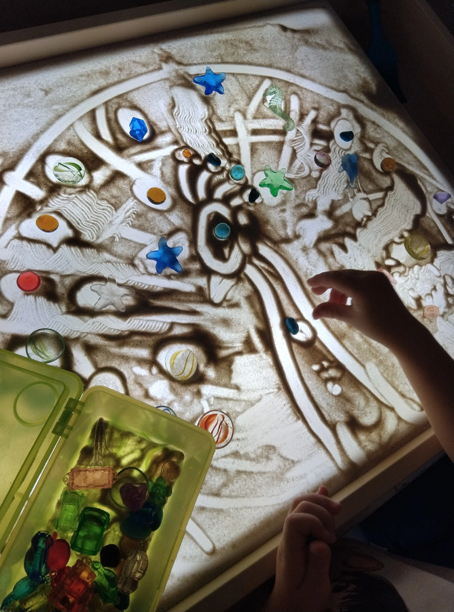или Путешествия со смыслом на световых столах Вы любите, ребята, Пересыпать песок. В руках у вас лопата, Ведерко и совок. Как нитка золотая, У вас из кулака Бежит струя густая Прохладного песка. Самуил Маршак «Желтая страница» Друзья! Русские поэты называли песок золотистым, желто-рдяным, ярким, сыпучим... Песок очень любят дети и взрослые: это и весёлые игры в песочнице в любимом дворе и на даче, прогулки по берегу моря, фестиваль песчаных скульптур в Петропавловской крепости, песочные сказки... Осенью и зимой мы нечасто можем себе позволить опустить руки в тёплый чистый песок, пересыпать его, играть с ним под музыку или в тишине, вместе с друзьями... Я, педагог театра Татьяна Иващенко, приглашаю ваших детей в образовательные путешествия на световых столах. Летом училась у педагогов-мастеров с большим опытоми творческим началом, Юлии Беловой и Алины Коваленко. У нас будут тактильно богатые занятия: песок самой мелкой фракции, очень приятный на ощупь, холодный и тёплый.