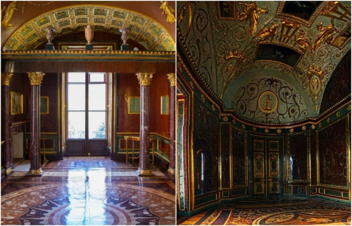 Верхний этаж украшали кабинеты, библиотека и Большой зал, отделанные минералами. На их убранство ушло 25 тонн мрамора и разноцветной яшмы.