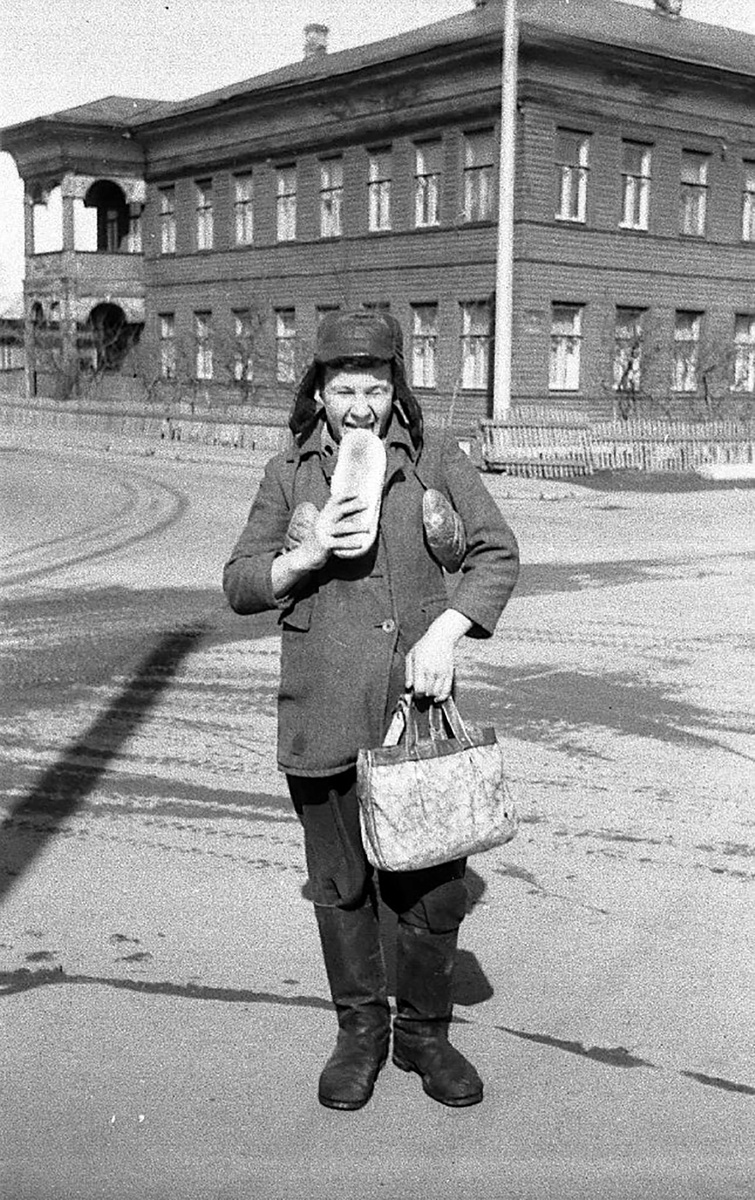 Перекрёсток улиц Кирова и Мальцева. Исторически это Малая Обуховская и Пятницкая улицы соответственно. Паренёк, закупившийся хлебом, позировал здесь скорее всего по той причине, что он проживал в этом доме, который известен в краеведении по фамилии последнего владельца - Смирнова. Крестьянином Яковом Афанасьевичем Смирновым он был куплен в 1913 году, а построен скорее всего к концу 1890-х. Сейчас под видом реставрации дом фактически просто собирают из новых материалов заново. На этом перекрёстке ещё исторически находилась водоразборная будка - одна из восьми по городу, где с начала ХХ века можно было купить воды.
