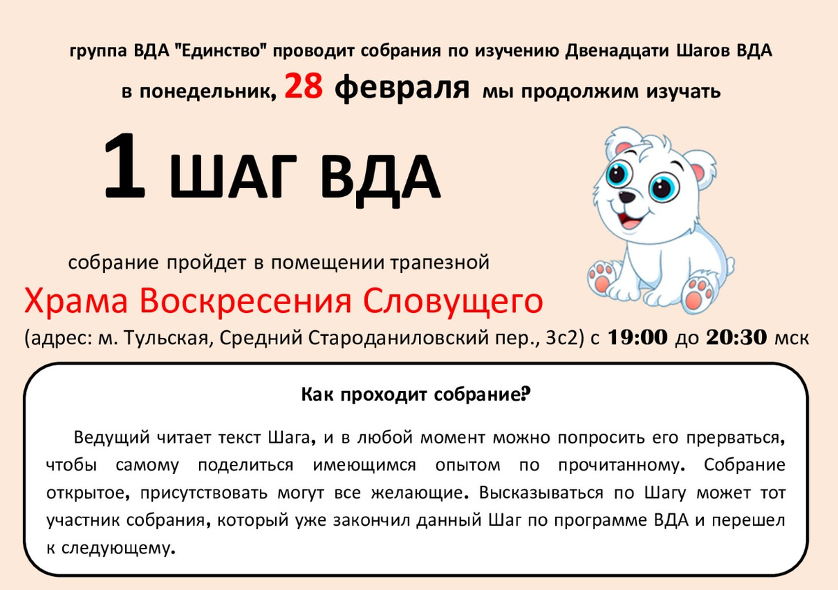 Пару лет назад я начала ходить на группы ВДА — это сокращенное название программы «Взрослые дети алкоголиков». Этот формат работает по всему миру — так же, как, например, «Анонимные алкоголики». Кстати, удивительно, что в Петербурге так много групп ВДА. Они собираются почти каждый день — в разное время, в разных районах, онлайн. Это некоммерческая история, прийти может любой желающий.