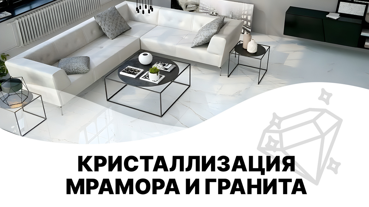 Сделать мрамор, а теперь уже и гранит, ещё более ярким и блестящим с помощью химии возможно, применив технологию химической полировки – “кристаллизации”. Ее можно производить на камне, который когда-то уже был переполирован, но потерял блеск или в процессе переполировки после абразива № 400. Необходимо иметь в виду, что если поверхность подвергалась кристаллизации ранее, то не в каждом случае получится возобновить на ней равномерный блеск при помощи повторной кристаллизации, не прибегая к шлифованию.