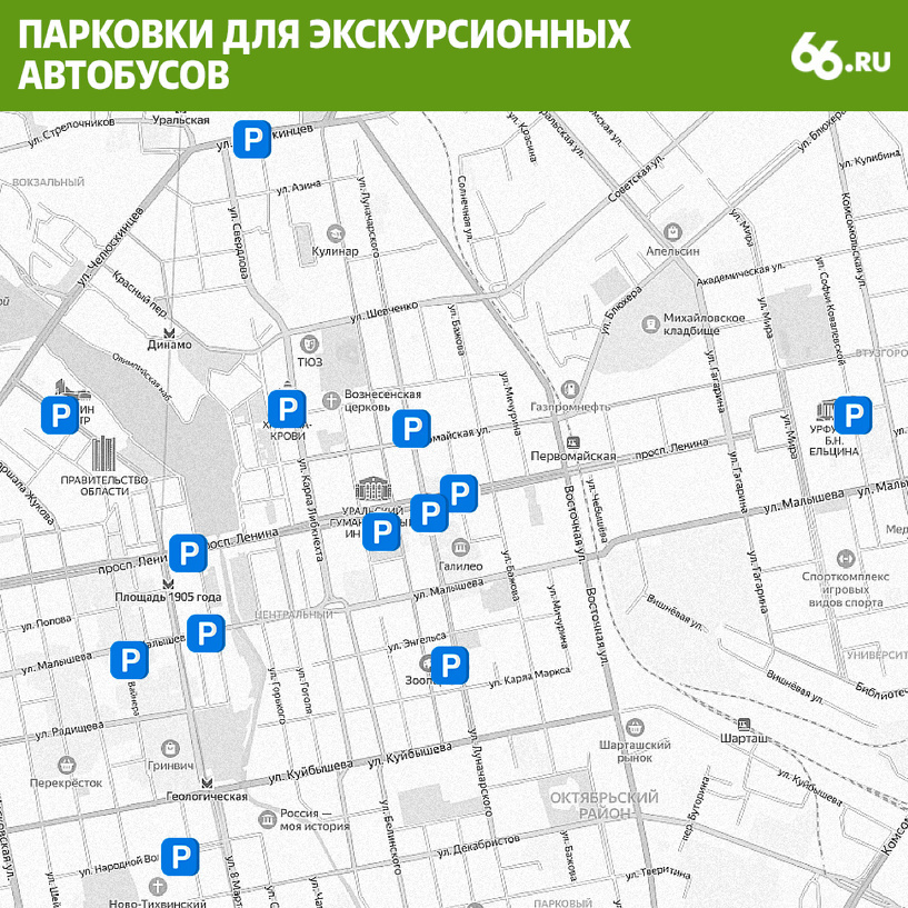 В Екатеринбурге открыли пять новых парковок для экскурсионных автобусов. Карта