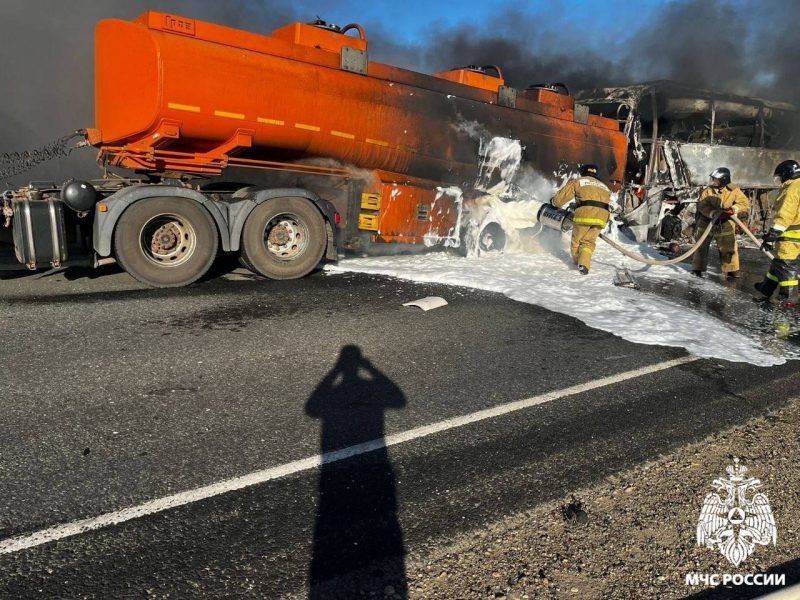 На участке федеральной трассы М-5 «Урал» столкнулись нефтевоз, автобус и грузовик с зерном. ДТП спровоцировало ландшафтный пожар, сообщают в региональном ГУ МЧС. По оперативным данным, днем 4 октября на участке трассы М-5 «Урал» между Покровкой и Козловкой в Новосергиевском районе столкнулись три транспортных средства. Дорогу не поделили автобус, грузовик с зерном и нефтевоз. В результате столкновения транспортные средства загорелись. Пламя перебросилось на сухую траву и лесополосу вдоль трассы. На месте происшествия работают расчеты МЧС, они ликвидируют последствия ДТП. Уточняется, что в результате дорожной аварии люди не пострадали. По факту проводят проверку. Как ранее писал «Оренбург Медиа», из-за ДТП с 16.50 перекрыт участок трассы М-5 «Урал» с км 311 — км 330. Это отрезок между Покровкой и Новосергиевкой. Ограничение будет действовать, ориентировочно, до 19.00. Продолжение: фото: ГУ МЧС по Оренбургской области