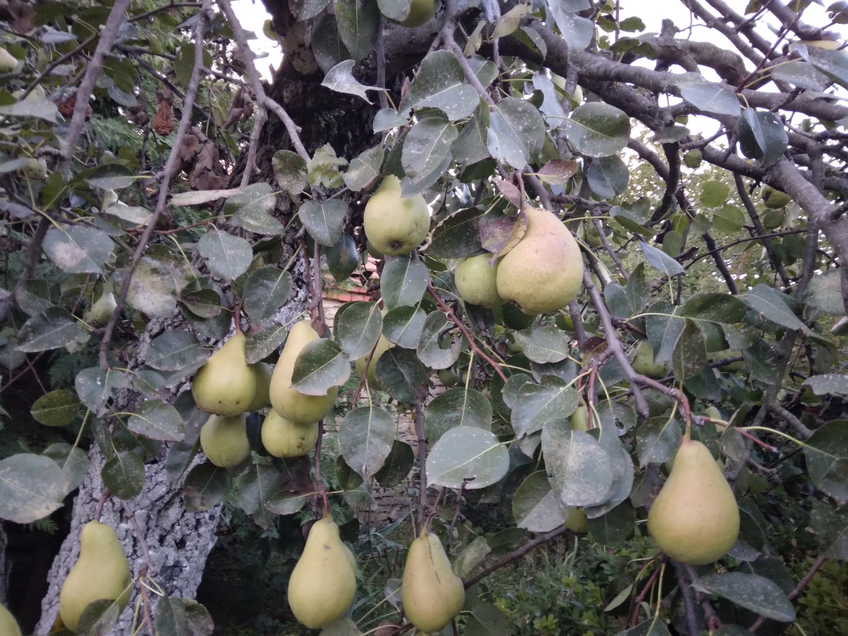 День сегодня выдался почти летний. Тёплый и безоблачный. Завтра к вечеру по прогнозу дождь, так что сегодня мне надо успеть собрать и сложить в коробки зимние груши. Старое дерево в этом году выдало обильный урожай, давно оно так не плодоносило. Я даже в августе удалила часть плодов, чтобы не ломались ветки, и все равно груш очень много. Две картонные коробки с грушами, завернутыми в газетную бумагу, у меня уже стоят на летней кухне. Наполню ещё одну- да и хватит.