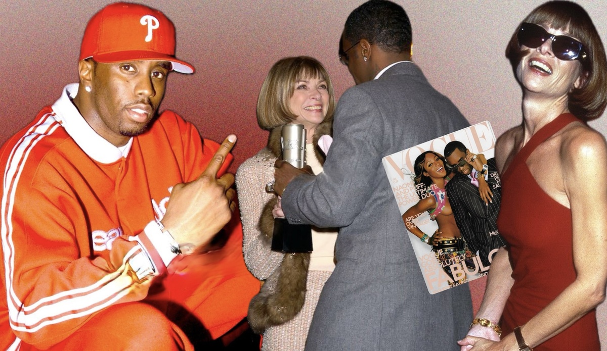 Винтур и Пи Дидди познакомились еще в прошлом веке. Известно, что в 1999 году Анна сама позвонила рэперу и пригласила его сняться в Vogue. Позже в беседе с журналистами Шон с восторгом благодарил подругу за опыт сотрудничества с глянцем. На снимках этого номера Пи Дидди восседает на диване в одной комнате с Джоном Гальяно и Карлом Лагерфельдом, выходит из Мерседеса с Кейт Мосс, а фотографирует их Энни Лейбовиц.