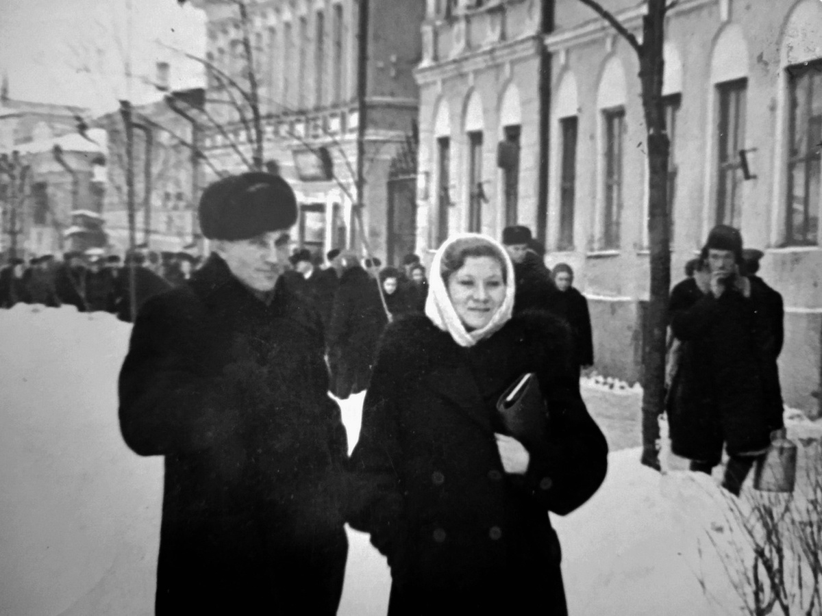 Справа дом Свешникова, а люди идут со стороны Кировского сквера.