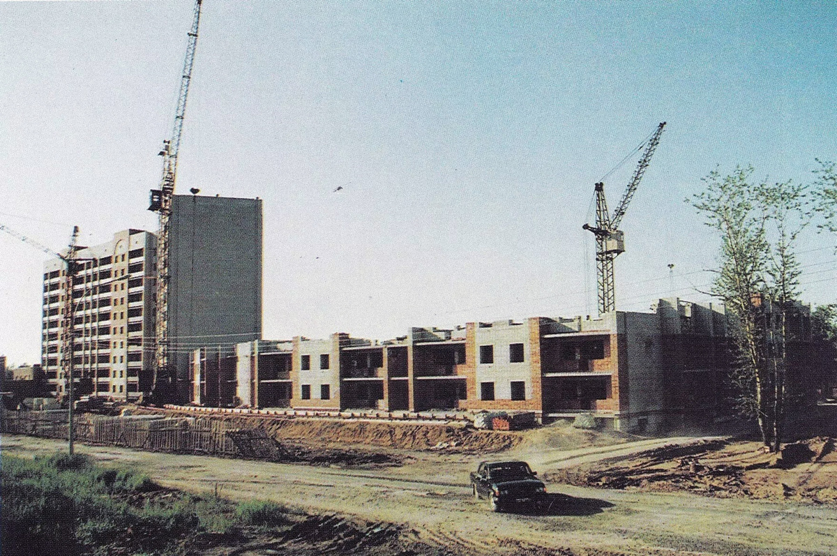 На снимке относительно недалёкий 1997 год и строится дом по Московской улице. Официально улица появилась в 1957 году и тогда её назвали Грязовецкой. Отходила она от Пошехонского шоссе.