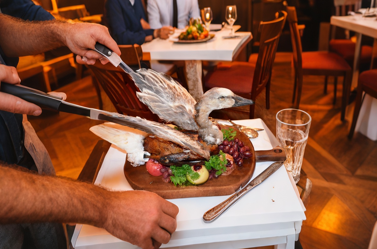 На пир подавали сказочных единорогов и павлинов с оперением