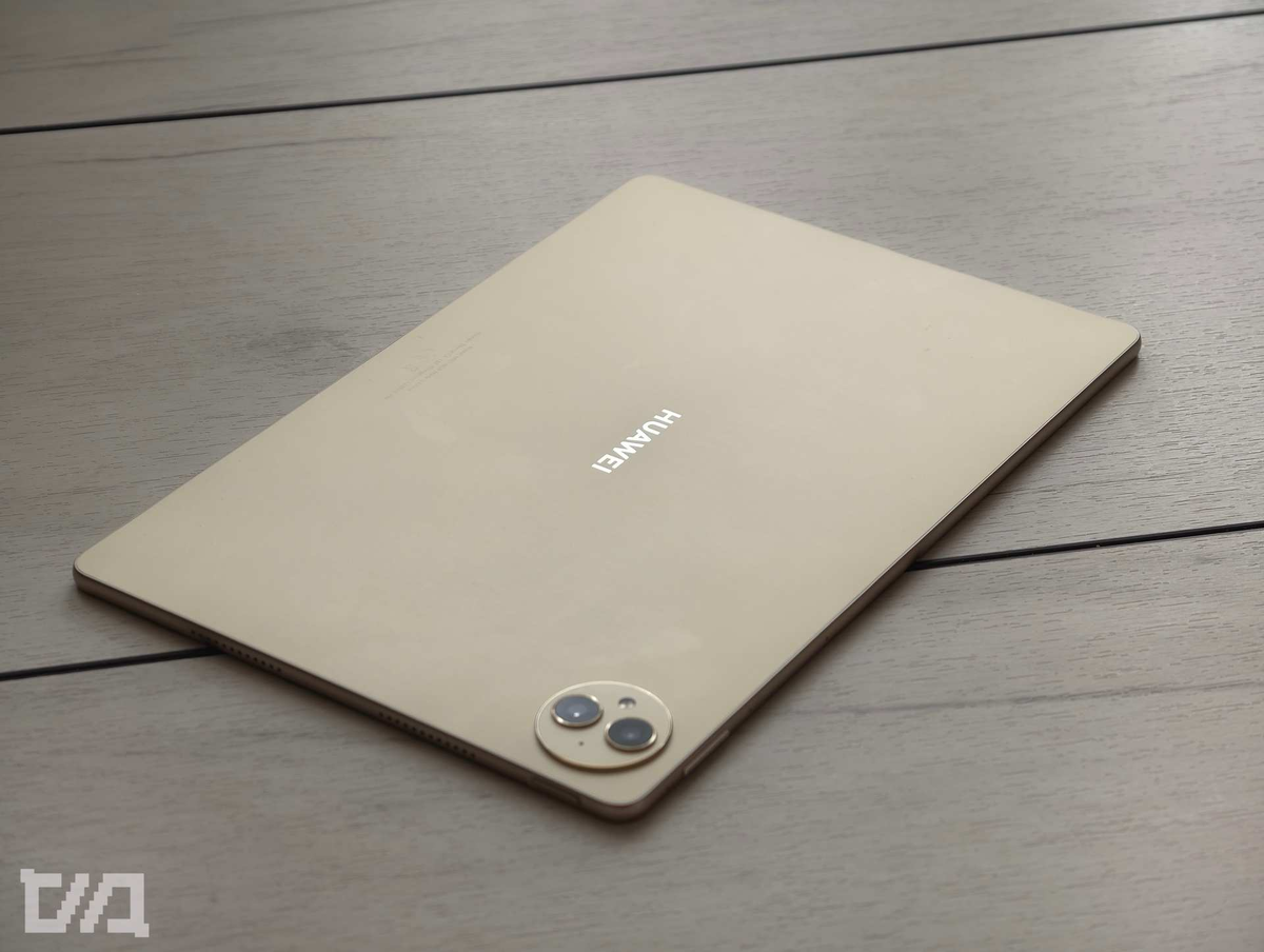 Выглядит HUAWEI MatePad Pro 12,2 " презентабельно. Корпус толщиной всего 5,5 мм обрамлён металлической рамкой, задняя крышка получила специальное покрытие, напоминающее по текстуре шёлк. Нежно-золотой цвет тоже подобран со вкусом. В дизайне чувствуются традиционные китайские мотивы — и это похвала. Помимо золотого, доступны чёрный и белый варианты.