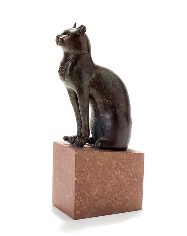 Хотя Древний Египет наиболее известен своей впечатляющей архитектурой и скульптурами, такими как Великие пирамиды, Сфинкс и Абу-Симбел, большинство египетских скульптур были намного меньше по размеру, достаточно посмотреть на артефакты датируемые 1000 годом до нашей эры. Две фигуры, кошка и Бастет, богиня, ассоциирующаяся с кошками, которую часто изображают с кошачьей головой, - во многом похожи на две стороны единого целого. Кошки были одомашнены египтянами около 1500 г. до н.э., вероятно, из-за их полезности в борьбе с грызунами. Вскоре они стали обычными домашними животными, и это новообретенное товарищество нашло отражение в искусстве, начиная с этого периода. С самых ранних династий, популярность Бастет неуклонно росла, начиная с её родного города Бубастиса в восточной дельте Нила, а храмы и святилища, посвященные ей, распространились по всему Египту. Надпись времен Рамсеса IV (1151-1145 до н.э.) гласит, что во время праздника Бастет нельзя охотиться на львов, что указывает на