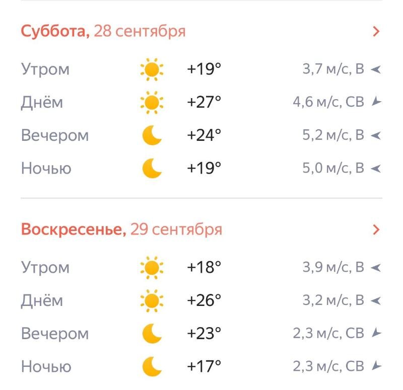 Кубанская столица в предстоящие выходные отметит День рождения. 28 и 29 сентября краснодарцев ждут концерты, мастер-классы, викторины, танцы, выставки и многие другие мероприятия. Рассказываем, какая погода сохранится в эти дни в Краснодаре. По данным «Яндекс.Погода», в субботу горожан ждет ясная и солнечная погода, столбики термометра достигнут отметки в +27 градусов тепла. Сильного пекла не будет, однако солнышко все ещё продолжит радовать жителей своими яркими лучами. В воскресенье будет на градус холоднее, столбики поднимутся до +26 градусов - у горожан будет возможность насладиться развлекательной программой в праздничные дни, не сгорев на солнышке. Однако, расслабляться все-таки не стоит - вечером температура упадет до +19 градусов в субботу и до +17 в воскресенье. По информации от Gismeteo, в субботу погода ожидается довольная теплая - до +28 градусов, а в воскресенье жители насладятся отметкой термометра в +27 градусов. С наступлением темноты синоптики обещают небольшое похолод