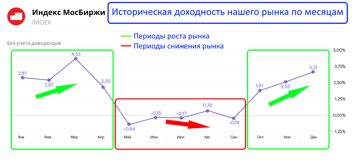 Сегодня у нас 1 октября и пришло время проанализировать исторические данные по динамике нашего рынка, чтобы спрогнозировать, как он поведёт себя в этом месяце. На рынке акций присутствуют свои закономерности, анализ которых может подсказать инвесторам будет ли рынок расти или снижаться. Одна из таких закономерностей - это сезонность.