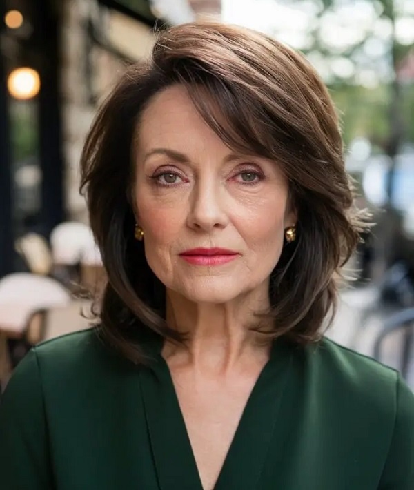 Насыщенные коричневые тона подчеркнут вашу естественную красоту, делая эту стрижку идеальной для женщин старше 50 лет, которые хотят изысканный и неподвластный времени стиль.