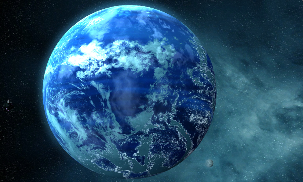 Планета Глизе 1214 b (GJ 1214 b) расположена в созвездии Змееносца, расстояние от нее до Земли - почти 40 световых лет. Экзопланета вращается вокруг постепенно остывающего красного карлика. Полный оборот планеты воскруг своей звезды занимает всего 1,5 день. По размеру Глизе 1214 b больше Земли, диаметр планеты превышает земной примерно в 2,5 раза. ●Прежние исследования показали, что Глизе 1214 b имеет плотную атмосферу, однако ученые не сразу определили, из чего она состоит - водорода или водяного пара. По массе и радиусу планеты предполагалось, что атмосфера содержит водород и гелий. Однако, в 2012 году ученые из Гарвард-Смитсоновского центра астрофизики, изучив данные телескопа "Хаббл", пришли к выводу, что атмосфера планеты состоит из густого водяного пара с небольшой примесью гелия и водорода. ●Поверхность планеты прогревается практически до 280 градусов Цельсия. Кипение при такой высокой температуре не происходит из-за высокого атмосферного давления. Возможно, но с малой вероятн