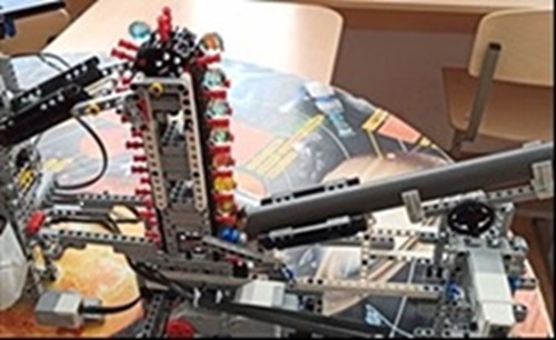Для создания собственной машины мы решили воспользоваться деталями конструктора LEGO MINDSTORMS EV3 и подручными материалами в виде пластиковых банок, стеклянных шариков и веревок. Чертежей и рисунков машин Голдберга для прообраза не заимствовали, а проявили фантазию. На фото 1 в приложении 2 показан внешний вид нашего варианта машины Р.Голдберга. По типу конструкции классифицируем нашу разработку как «линейная». По замыслу машина Голдберга должна включить и развернуть передающую антенну с солнечными батареями.