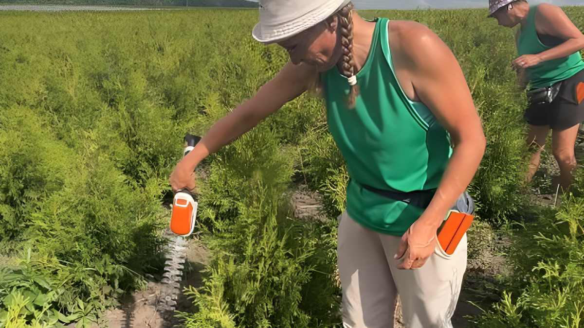 Бригада из 3 человек с аккумуляторными кусторезами обрабатывает все растения на поле за 3 дня.