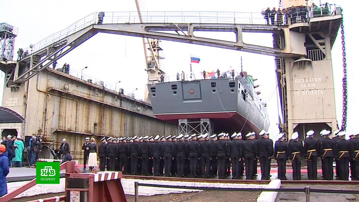 На «Северной верфи» сегодня торжественно спустили на воду фрегат «Адмирал флота Советского Союза Исаков». В церемонии принял участие главнокомандующий ВМФ РФ адмирал Александр Моисеев.