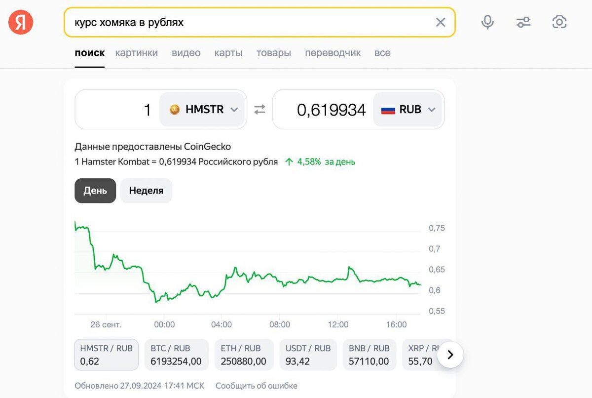 Курс монеты Хомяка, которая так привлекла внимание на старте, обрушился почти в два раза всего за сутки. Если вчера цена держалась на высоком уровне, то сегодня за 1 монету дают примерно 60 копеек. Это падение заставило многих задуматься о волатильности новых криптовалют и рисках для начинающих трейдеров. Почему Хомяк упал? 📉 1. Высокая волатильность. Как и большинство новых криптовалют, Хомяк столкнулся с резкими колебаниями курса. После листинга часто происходит так называемый «памп», когда цена взлетает на волне ажиотажа, но затем быстро откатывается. 2. Низкий интерес к листингу. По данным РБК, всего 4% запросов в интернете о Хомяке касались листинга монеты. Это говорит о том, что игроки и инвесторы больше интересуются механиками игры, нежели трейдингом. Что интересует пользователей? 🔍 По данным поисковых систем, большинство запросов о Хомяке связаны с механиками игры и тем, как она работает. Это объясняет, почему листинг не вызвал такого большого интереса, как ожидалось