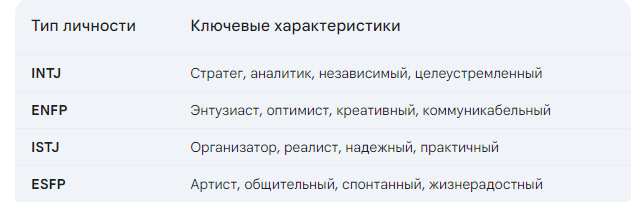 Примеры типов личности по MBTI